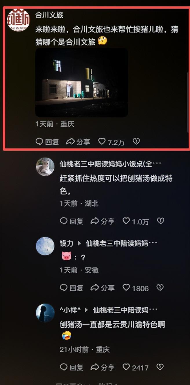 但最让人意想不到的是,一个23岁重庆姑娘随手发的杀猪求助视频,居然能把整个合川区推上全国热搜。